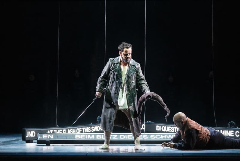 Die Systeme stammen von der Daylite® Informationssysteme GmbH, einem führenden Hersteller moderner LED Anzeigen. Die speziell für die Bonner Oper konzipierten Laufschriften durchziehen die Bühne horizontal und vertikal, erstrahlen szenengenau in den gewünschten Farben und zeigen Textfragmente, Zitate aus dem Libretto, Worte sowie poetische Kommentare in den unterschiedlichsten Sprachen. So entsteht eine zusätzliche visuelle Erzählebene, die die emotionale Kraft der Musik und die gesellschaftliche Dimension von Verdis Werk intensiv unterstreicht.
